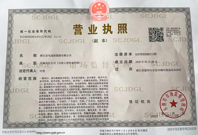 > 浙江易電通新能源有限公司成立于2020年5月,注冊(cè)資金5018萬(wàn)元